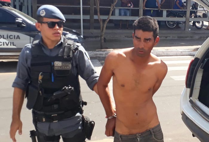 Vizinhos ouviram os gritos e chamaram a viatura do bairro que fez a prisão do mesmo, na pressa ele deixou cueca e a camisa na residência, os policiais pegaram a faca, cueca e camisa do acusado, além de uma lata usada para fumar crack.
