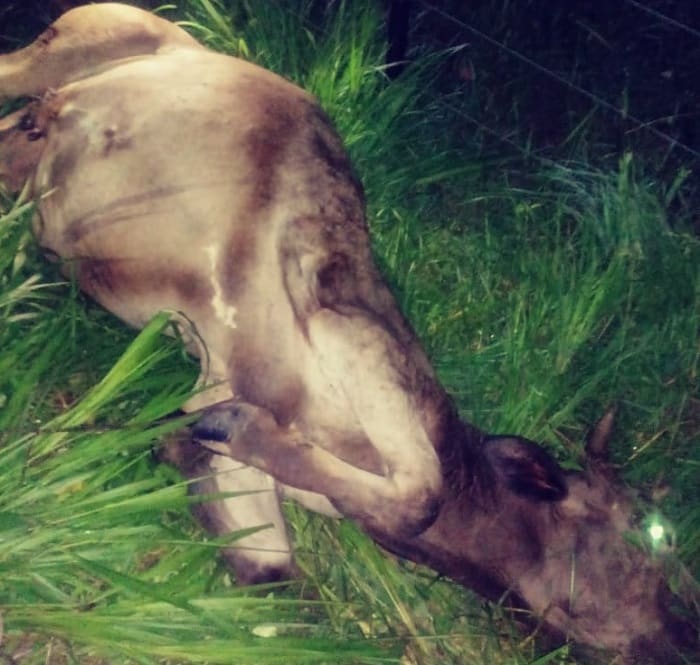 O local do acidente era asfaltado e não chovia no momento. Ainda segundo familiares, umas das causas que pode ter contribuído para o acidente foi a penumbra e a cor cinza do animal.