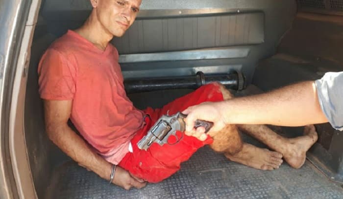 Com ele, a polícia apreendeu um revólver calibre 38 municiado. Além disso, foi recuperado um smartphone, oriundo de outro assalto praticado horas antes. Ele foi autuado por assalto, porte ilegal de arma de fogo e invasão de domicílio.