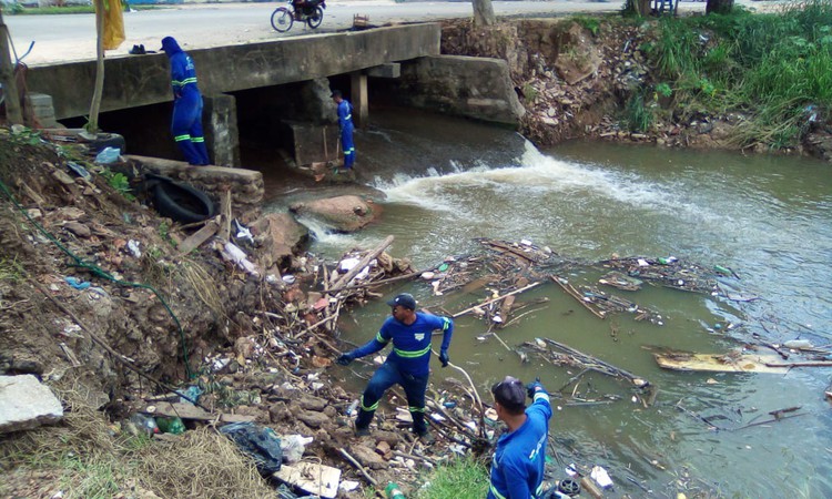 IMPERATRIZ: Equipes de limpeza trabalham em galeria do riacho Capivara no Santa Rita