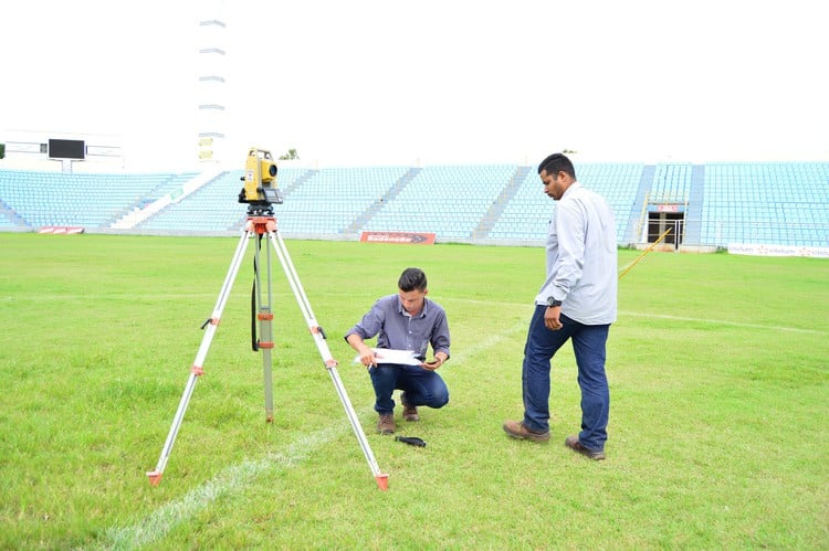 Vistoria feira pelo topógrafo Michael Treglia e do auxiliar de topografia, Emerson Baioco, foi acompanhada pelo titular da Sedel, Eudes Feitosa e pelo administrador do estádio, Cristiano Silva.Segundo Michael, foi averiguada uma diferença de 22 centímetros em relação ao comprimento do campo de jogo, que de acordo o padrão da Federação Internacional de Futebol –FIFA, tem de ser 105 metros de comprimento por 68 metros de largura.