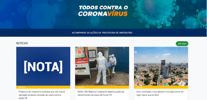 Diariamente, o Painel Coronavírus disponibiliza as notícias, boletins, contratos, receitas financeiras e despesas, estatísticas sobre a execução do plano de vacinação e permite ainda que cidadãos registrem demandas em ouvidoria especifica. Tudo relacionado ao enfrentamento da Covid-19 na zona urbana e rural de Imperatriz.