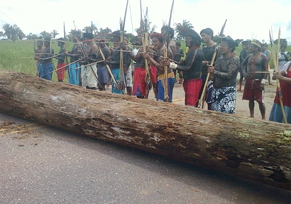 A manifestação começou por volta das 9 horas da manhã. Os índios também exigem melhorias na saúde, educação e indenização para as 80 famílias da aldeia, que segundo o cacique, foram prejudicadas pela construção da rodovia que corta a área.