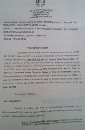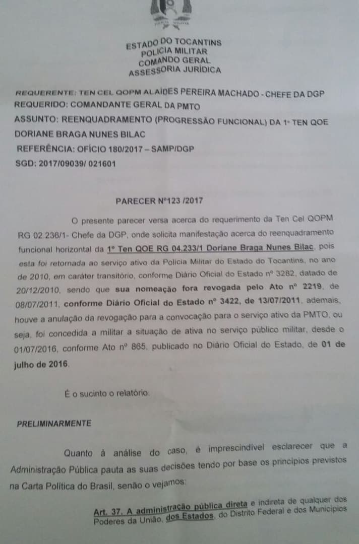 A policial militar, Doriane Braga Nunes Bilac, irmã da deputada federal Josi Nunes (PMDB), deve receber do Governo do Tocantins, um retroativo referente ao reenquadramento de sua progressão funcional. O pedido foi feito via Ofício 180/2017, e aguarda parecer do Comando Geral da PM aprovando o benefício.