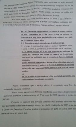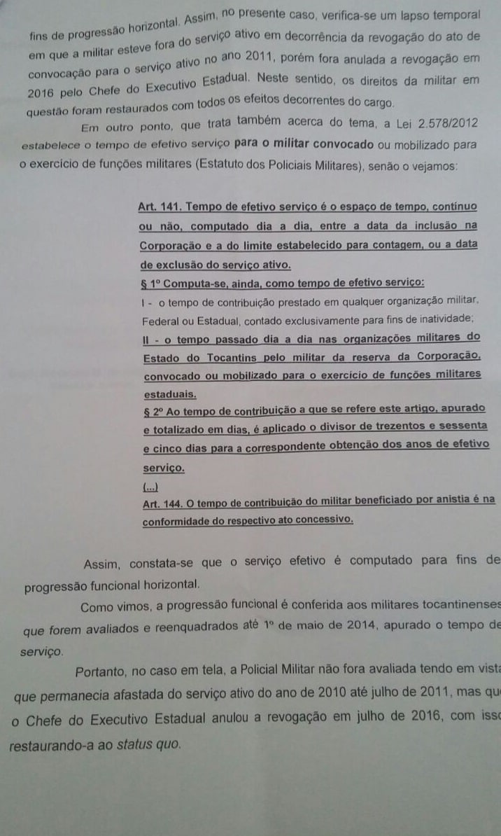 Doriane alega que foi retornada a ativa no ano de 2010, em carater transitório, tendo sua nomeação revogada em 2011, sendo que depois houve a anulação da revogação para a convocação para o serviço na ativa em 2016.