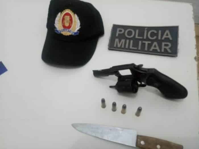 Em poder do suspeito os policiais encontraram um revólver calibre 38, municiado com quatro cartuchos intactos, além de uma faca de 5 polegadas encontrada com o autor.