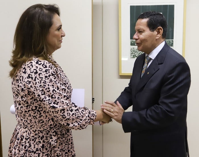 “Falamos sobre o altíssimo potencial agrícola do Matopiba, a última fronteira agrícola em expansão do mundo tem um demandas importantes principalmente na área de logística para que a região se desenvolva”, disse a senadora que, ao final, a presenteou Mourão com artesanato de Capim Dourado.