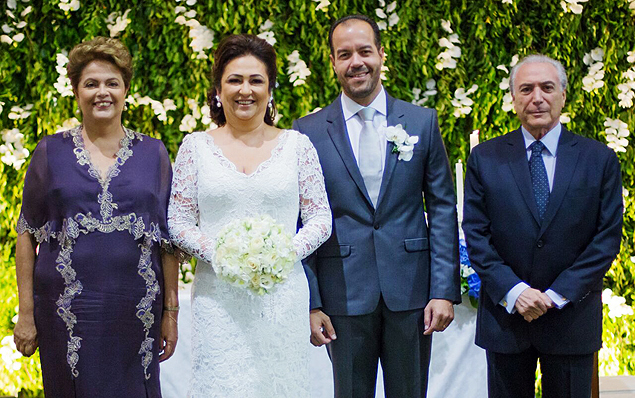 O recém-nomeado ministro das Cidades, Gilberto Kassab (PSD-SP) foi um dos padrinhos do matrimônio.