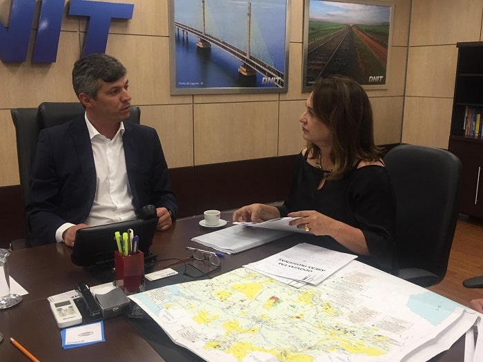 A senadora Kátia Abreu se reuniu nesta quarta-feira (1º) com o diretor-geral do Departamento Nacional de Infraestrutura de Transportes (DNIT), Valter Casimiro Silveira, para pedir informações sobre o andamento da construção da chamada “Transbananal”, extensão da BR-242 que atravessa a Ilha do Bananal, no Tocantins.