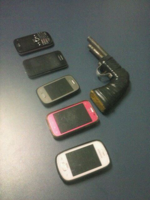 Eles foram encontrados em uma motocicleta Honda/Titan, cor preta, placa LPK-9260 e estavam com os cinco celulares roubados, além de uma arma de fabricação caseira, com a qual intimidaram as vítimas. Um deles foi identificado como Arnaldo Francisco Pereira da Silva, de 21 anos e o outro se trata de um adolescente de 16 anos, cuja a identidade não pode ser revelada, por se tratar de um menor de idade, sendo que ambos são moradores de Praia Norte.