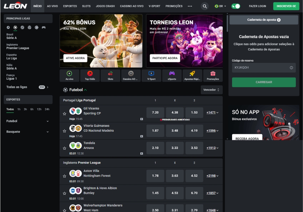 Existem bónus de boas-vindas específicos para novos registos? Sim, o Leon Bet implementa uma estratégia agressiva de aquisição e oferece habitualmente pacotes de boas-vindas distintos para as secções de desporto e casino. Estes bónus geralmente correspondem a uma percentagem de 100% ou mais sobre o primeiro depósito, podendo incluir também rodadas grátis em slots selecionadas ou apostas gratuitas (freebets). É crucial ler sempre os termos e condições, especialmente os requisitos de aposta (rollover), antes de aceitar.