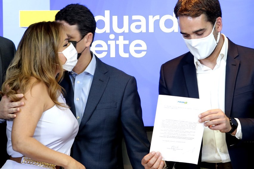 Na ocasião, a parlamentar participou do ato na sede do PSDB, onde acompanhou Eduardo Leite na entrega de sua carta de inscrição nas prévias. (Foto: Dennys William)