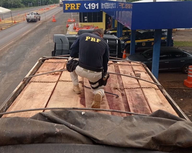 O caminhão foi removido para o Posto PRF para exame mais detalhado da carga transportada, sendo identificadas algumas irregularidades. Os documentos informam tratar-se do transporte de 38 m³ de madeira serrada. Medições na carga transportada verificaram o transporte do volume declarado, porém, ao ser retirado a lona que cobria a carga e após analise da mesma, constatou-se a não correspondência do material aos os perfis/espécies contidos na GF.