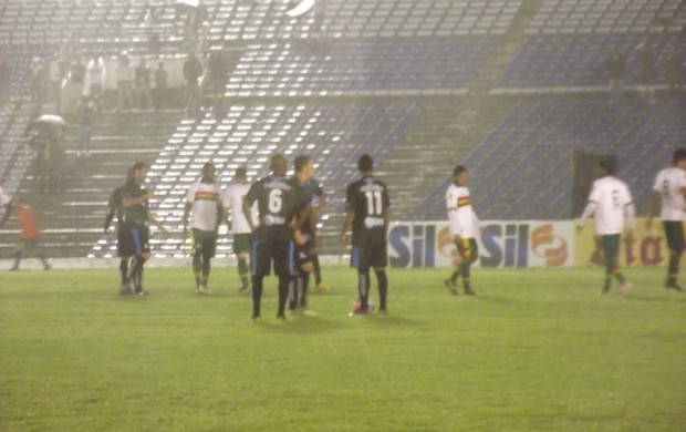 O Sampaio Corrêa, contudo, era melhor em campo. E tinha no atacante Pimentinha o principal nome do jogo. Foi dele o primeiro chute, que passou perto, mas acabou saindo. Nos lances seguintes, Pimentinha continuou assustando o gol de Éder. Ora a zaga cortava, ora o atacante chutava para fora.