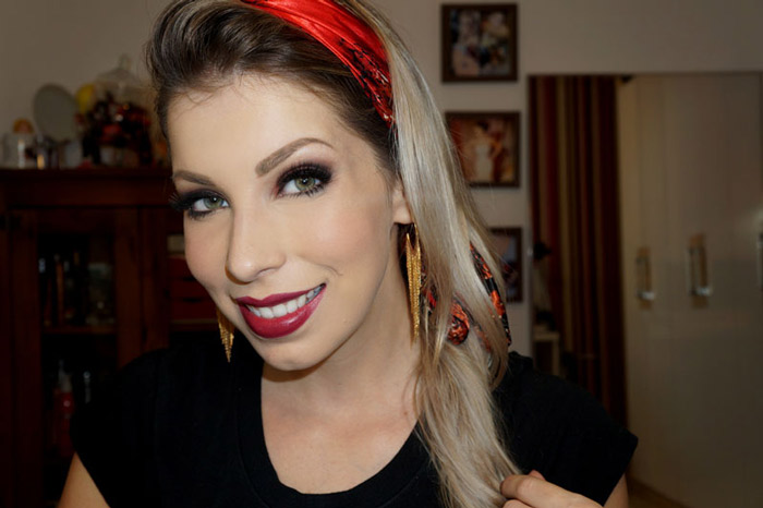 A maquiagem de hoje é muito fácil de fazer e tem um efeito lindo. A sombra é aplicada de um jeito bem simples, mas com cores versáteis e que deixam a maquiagem sofisticada. Para fechar a produção, escolhi um batom “Marsala”, que é a cor de 2015.