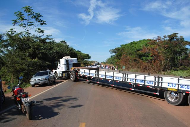 Cerca de dois mil moradores de Guaraí, a 173 km de Palmas, bloquearam o trânsito na BR-153, no km 337, com uma carreta, nesta terça-feira, 26, durante três horas, nas proximidades do Córrego Tranqueira. A manifestação gerou engarrafamento de 12 quilômetros de cada lado da pista, informou a Polícia Rodoviária Federal. O objetivo foi cobrar soluções para conclusão da obra de travessia urbana.