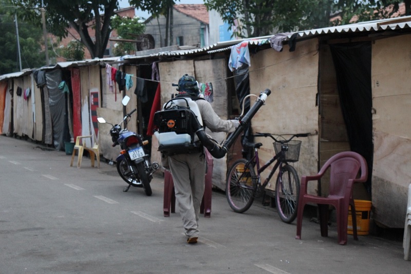 O agente Reginaldo Rodrigues explica que o trabalho deles vem depois de uma ação educativa, onde as pessoas são informadas sobre os cuidados para evitar a proliferação dos mosquitos. “O pessoal faz visitas, palestras, entrega de panfletos, entrega de cloro e agora viemos fazer esse trabalho de pulverização para não complicar a questão endêmica dos abrigados. Estamos trabalhando com a borrifação de partículas, lançadas ao ar, que faz o trabalho em torno dos barracos”, esclarece o agente de endemias.