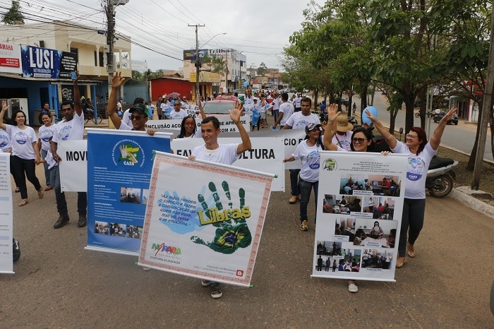 A caminhada pela valorização e respeito da cultura surda contou com aproximadamente 100 estudantes e marcou o dia nacional dos surdos em Marabá, comemorado nesta quarta-feira dia 26 de setembro. Os estudantes acompanhados dos professores, se deslocaram da Escola Jonathas Pontes Athias, na folha 22 da Nova Marabá, onde funciona o Centro de Atendimento Especializado na Área de Surdez (CAES), até a praça Osório Pinheiro em frente à Prefeitura de Marabá.