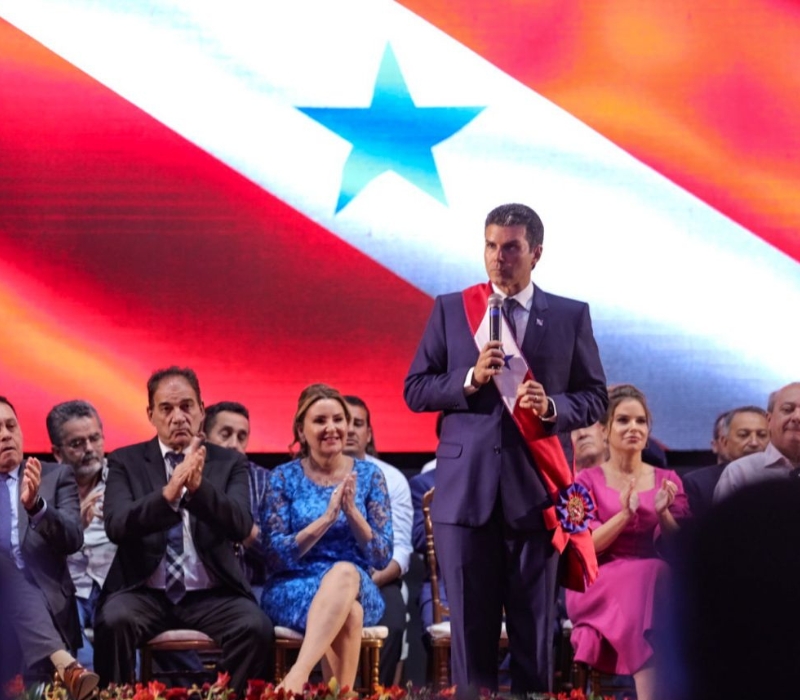 Helder Barbalho recebeu a faixa de três pessoas de diferentes representatividades da sociedade: uma aluna da Escola Estadual de Ensino Médio professor Anísio Teixeira, o presidente do Sindicato da Agricultura Familiar de Marabá, Tião Branco, e da liderança Indígena mais antiga da Aldeia Gorotire, Cubeí Kayapó.