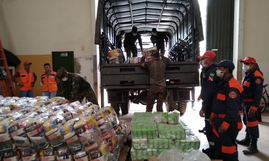 A entrega das cestas conta com o apoio da Defesa Civil, Corpo de Bombeiros, Exército Brasileiro e Guarda Municipal.