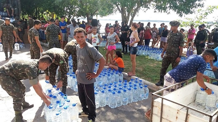 Em 10 de março, feito reabastecimento de água em todos os abrigos. Entregues cerca de 20 vasilhames de cinco litros de água a cada família. Essa ação prosseguiu dia 12, com mais reabastecimento de água e entrega de 12 kits de gêneros alimentícios e outros bens de consumo.