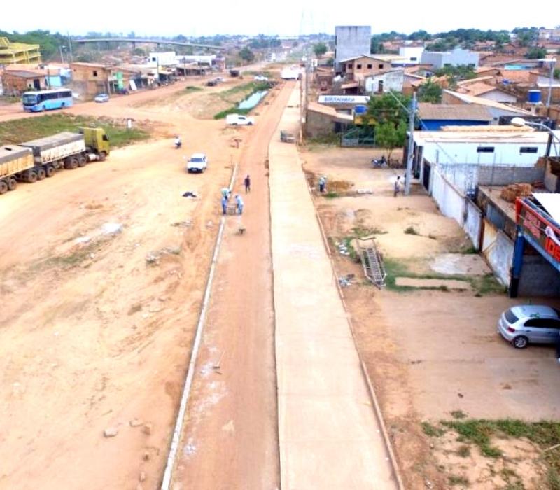Aproximadamente 400 metros do serviço já está completo, de um total de 950m em toda sua extensão. Os trabalhos para pavimentação iniciaram há três semanas com o serviço de drenagem e terraplanagem no trecho onde havia os maiores registros de buracos, acúmulo de lama e poeira, que atrapalhavam a vida comercial do bairro.