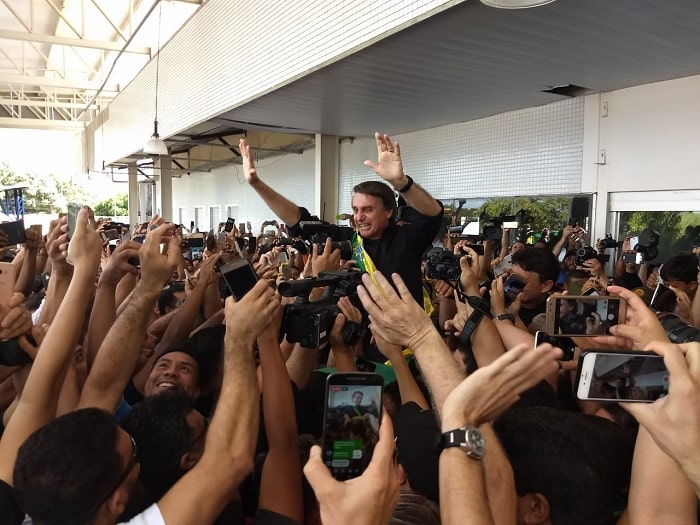 Mesmo com presença reduzida, o que se viu foi uma recepção calorosa dos apoiadores de Bolsonaro, que se esforçaram para não deixar o evento perder o pique. Logo quando saiu da área de desembarque, Bolsonaro recebeu de seus seguidores uma faixa que simulava a faixa presidencial.