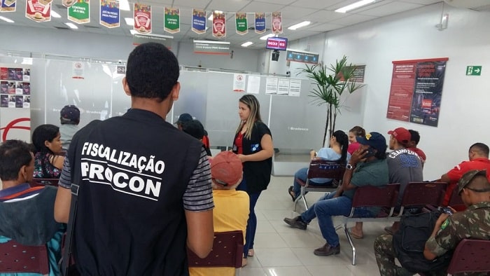A equipe do Procon vai in loco e detecta o horário que o cliente está no estabelecimento por meio da senha. É avaliada também se há omissão na entrega da senha e verificado se o atendimento na fila preferencial do idoso está sendo correto. Esta é a segunda visita feita nas instituições bancárias este ano.