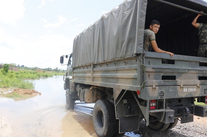 Desde o último domingo, 11, a Defesa Civil, em parceria com o Exército, está realizando o trabalho de remoção das famílias atingidas pela enchente em Marabá. São 18 caminhões em plena atividade, sendo 8 do Exército e 10 alugados pela Prefeitura. Uma equipe formada com cerca de 120 pessoas entre civis, militares e voluntários.