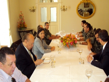 A governadora Roseana Sarney recebeu nesta segunda-feira (5), no Palácio dos Leões, o general da 10ª Região Militar de Fortaleza, Gomes de Matos, e o comandante do 24º Batalhão de Caçadores, Coronel Flávio Peregrino, além de outros oficiais. Ela agradeceu o apoio do Exército na garantia da segurança aos maranhenses durante o período de paralisação dos policiais militares e bombeiros.