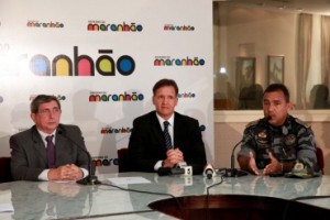 O governador em exercício, Washington Luiz Oliveira, e o secretário de Estado de Segurança Pública, Aluísio Mendes, em coletiva à imprensa no Palácio dos Leões, esclareceram o posicionamento do Governo do Estado frente à paralisação dos policiais militares, nesta terça-feira (8).