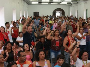 Os professores se reuniram, neste domingo (15), em assembléia geral, no Convento das Mercês, para avaliarem o documento da Secretaria de Estado de Educação (Seduc) com uma nova redação para a proposta apresentada à categoria na semana passada.