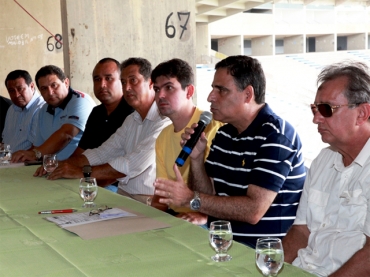 A solenidade de assinatura da Ordem de Serviço (OS) aconteceu no próprio estádio e contou com as presenças do secretário-adjunto de Obras Civis da Sinfra, Aparício Bandeira; do secretário de Estado de Meio Ambiente, Victor Mendes; dos deputados estaduais Roberto Costa (PMDB), Jota Pinto (PR) e Magno Bacelar (PV); além dos vereadores Umbelino Junior (PV) e Astro de Ogum (PMN).
