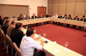 Os secretários de Estado chefe da Casa Civil, Luís Fernando Silva, e de Assuntos Políticos, Hildo Rocha – representando a governadora Roseana Sarney -, coordenaram o sexto encontro entre representantes do Executivo e do Legislativo, na tarde desta quarta-feira (3), na Sala de Reuniões do Hotel Luzeiros, junto com o presidente da Assembleia Legislativa do Maranhão, Arnaldo Melo (PMDB), e o líder do governo na AL, Manoel Ribeiro (PTB). Participaram do encontro 22 deputados estaduais.