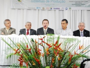 Presentes na solenidade de abertura, o reitor da Uema, José Augusto Oliveira e o representante da Sociedade Brasileira de Sistemas de Produção, João Roberto Correia, entre outras autoridades.