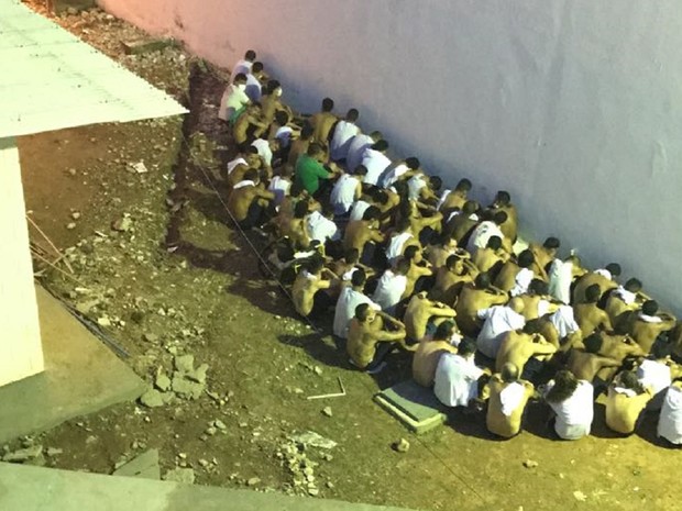 Os presos foram contidos e colocados no pátio da unidade, durante uma revista nas celas.