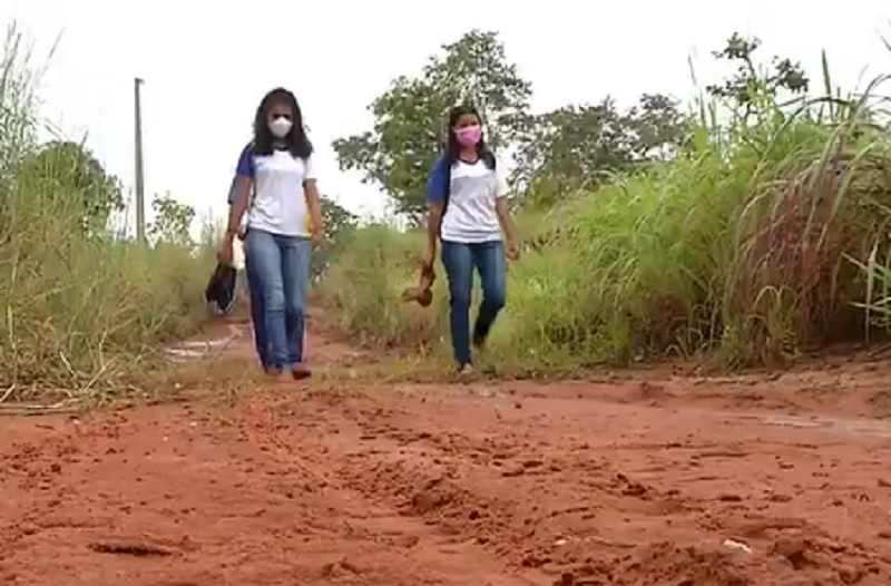 “É triste porque é bem longe. Chegava lá doendo as pernas, cansada. Podiam mandar arrumar a estrada porque a gente não aguenta mais esse sofrimento”, disse a Clarisse Santos Lima, de 15 anos.