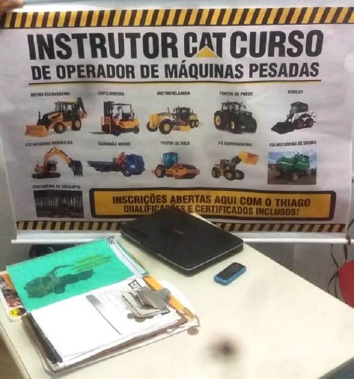 Nos pertencentes do suspeito, a PM encontrou 01 notebook, várias apostilas, 01 banner com informações do curso, 01 aparelho celular, uma quantia de R$ 11,25 reais, um título de eleitor e uma declaração de renda. Além dos objetos, o acusado afirmou que os documentos também eram dele, porém, diferente do primeiro nome por ele apresentado.