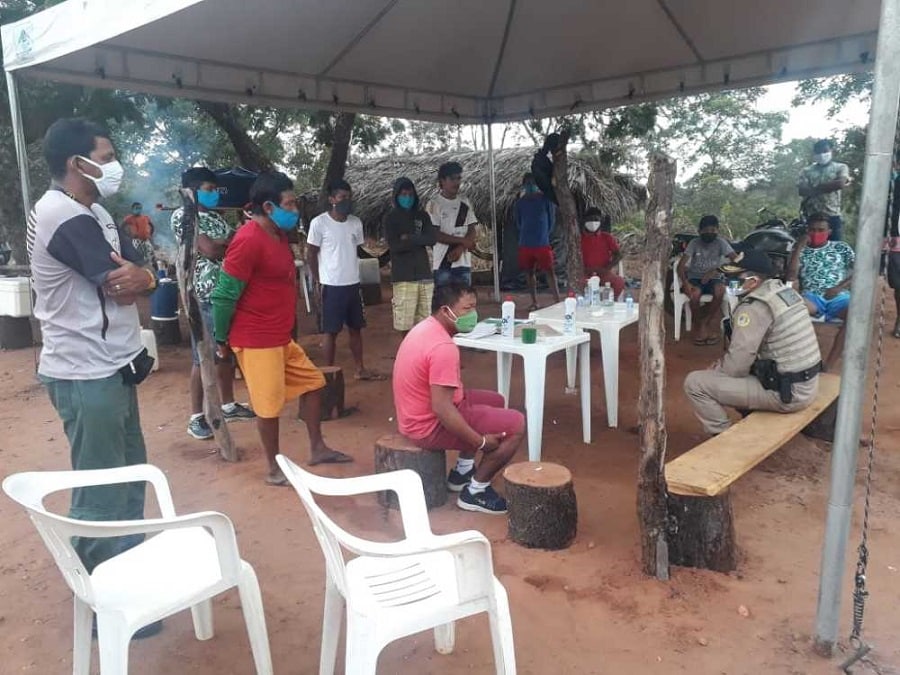 No local, além de informar os indígenas sobre a ilegalidade do bloqueio de vias públicas, a Polícia Militar passou orientações no sentido de conscientizar a população indígena sobre a prevenção do novo coronavírus. No decorrer da reunião, os caciques informaram que não se tratava de um bloqueio, mas de uma barreira sanitária para controlar a entrada e saída dos índios das aldeias localizadas naquela região. De acordo com as lideranças indígenas, os veículos que precisarem transitar pela rodovia não estarão impedidos, porém os indígenas estão orientando os condutores para não jogarem lixo às margens da rodovia e também não terão permissão para adentrar em qualquer aldeia.