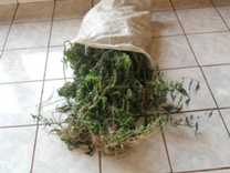 No local com o apoio de uma da guarnição local a patrulha realizou uma varredura em torno da residência. A moto não foi localizada, mas foi encontrado em um saco de fibra, com capacidade para 60Kg, uma quantia de 3,205Kg de maconha.
