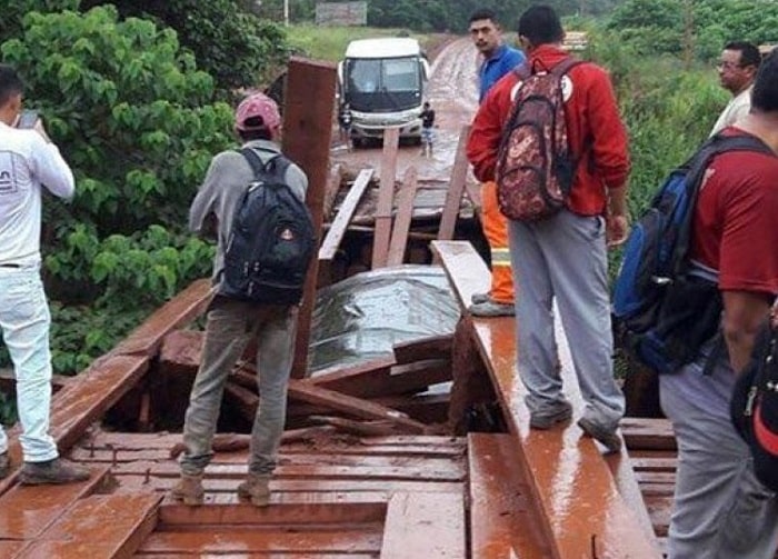 Uma ponte cedeu no momento que um caminhão passava, na manhã desta quinta-feira (24) , na rodovia BR-230, a Transamazônica, no município de Medicilândia, sudoeste do Pará. O acidente foi filmado. Não há registro de feridos