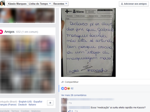 Um ‘medicamento’ inusitado foi receitado por uma pediatra para uma menina de três anos em um hospital público de Palmas. Após realizar exames e não encontrar nenhuma enfermidade com a paciente, a médica perguntou a Gabriela Marques Lacerda o que poderia ser feito para que ela melhorasse. A pequena respondeu que queria um estojo de maquiagem novo. O pedido foi escrito na receita e entregue aos pais.