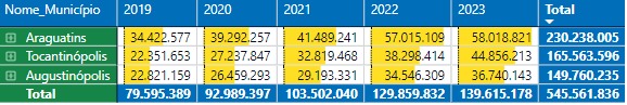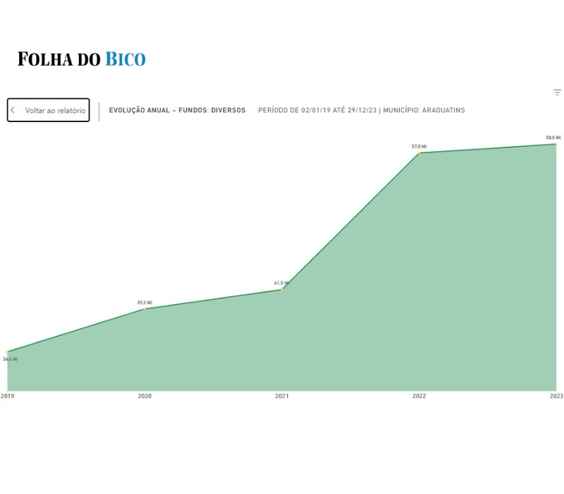 Para efeito comparativo, vamos mostrar os repasses das três maiores municípios do Bico: Araguatins, Tocantinópolis e Augustinópolis.