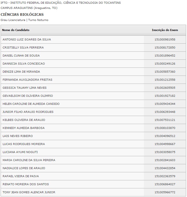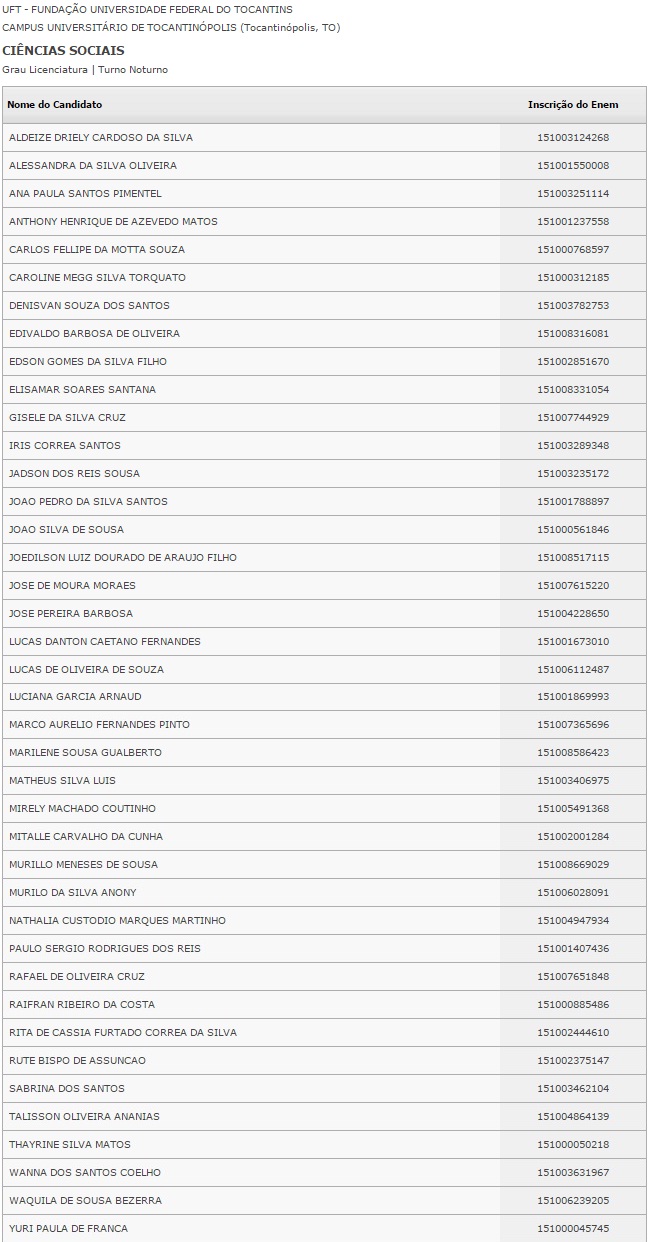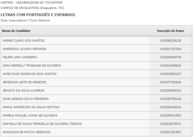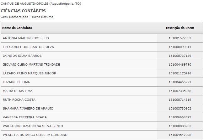 O Ministério da Educação divulgou nesta segunda-feira, 18, o resultado do Sistema de Seleção Unificada (Sisu), na internet. Ao todo, 240 vagas em 3 instituições públicas de ensino superior foram disputados no Bico do Papagaio. Os candidatos selecionados deverão fazer a matrícula nos dias 22, 25 e 26 de janeiro.