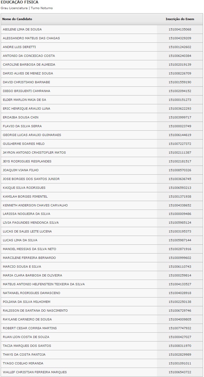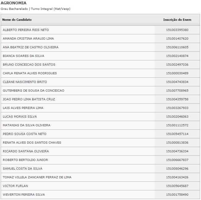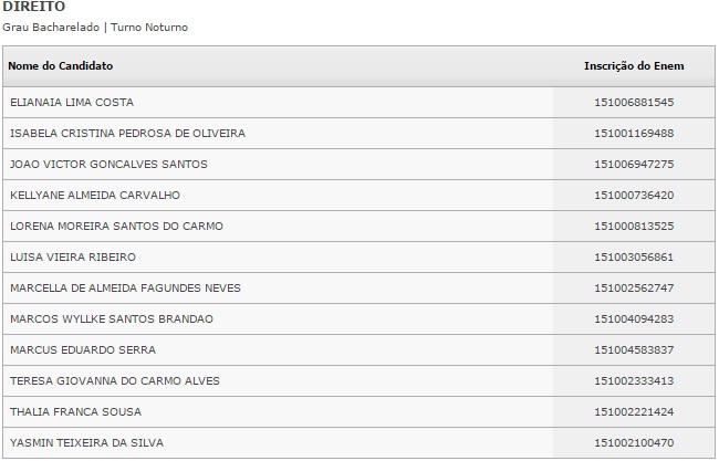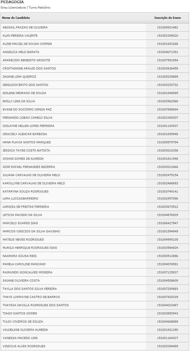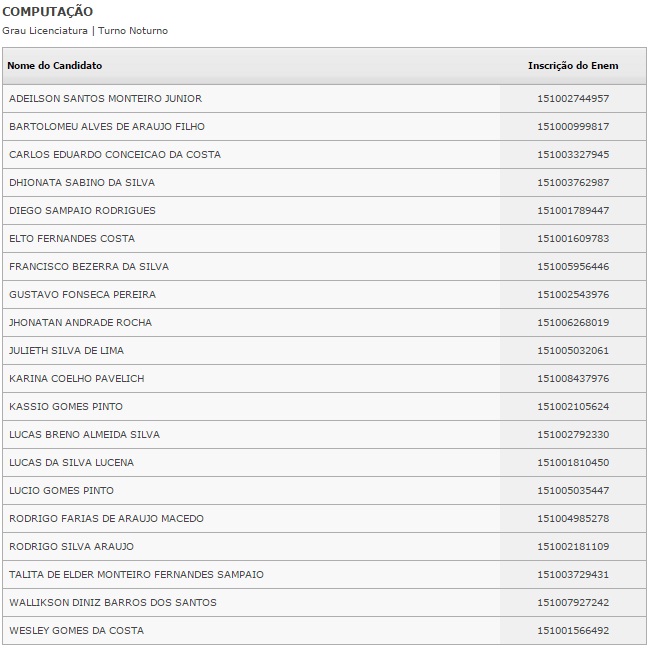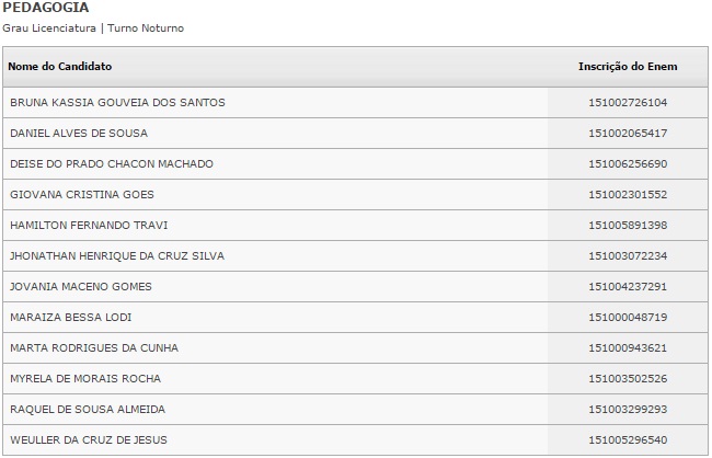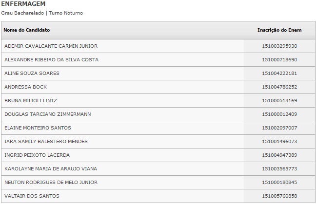 O resultado dos selecionados pela lista será divulgado no dia 4 de fevereiro. Caberá ao estudante procurar a instituição de ensino e fazer a matrícula.