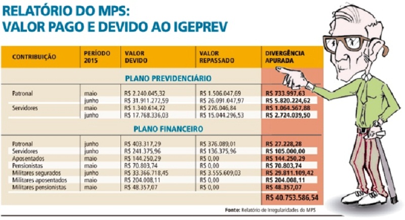 O Ministério da Previdência Social (MPS) aponta que o Instituto de Gestão Previdenciária do Tocantins (Igeprev) deixou de receber R$ 40,7 milhões de contribuições patronal e dos servidores que são repassadas pelo governo do Estado.