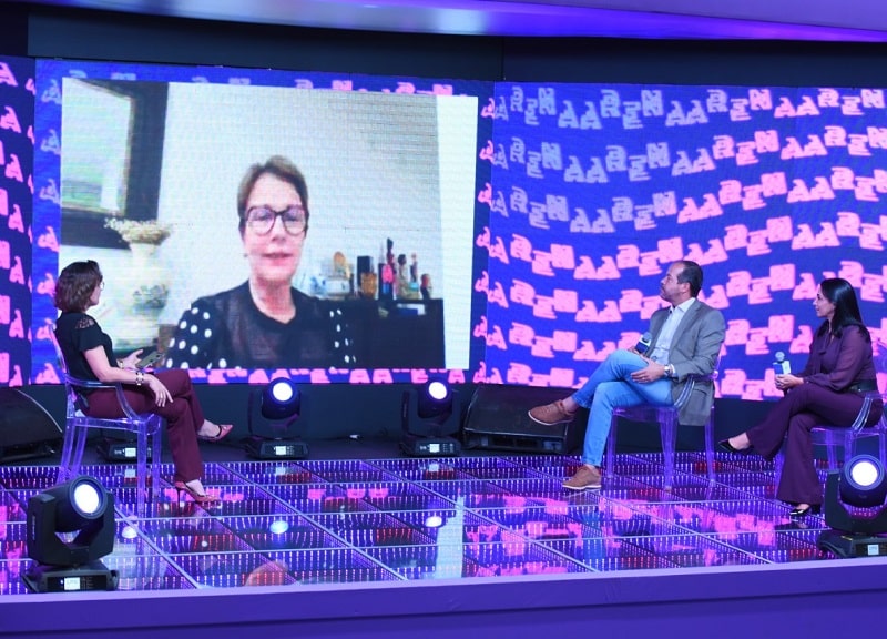 A Ministra da Agricultura, Tereza Cristina Corrêa, fez participação especial no dia voltado a agronegócio na Arena do Conhecimento. Em clima descontraído conversou com o superintende do Sebrae Tocantins, Moisés Gomes, e a diretora técnica, Eliana Castro. Agradeceu o convite por fazer parte de momento tão ímpar de qualificação e parabenizou o Sebrae Tocantins por ser o diferencial nos pequenos negócios do Estado.