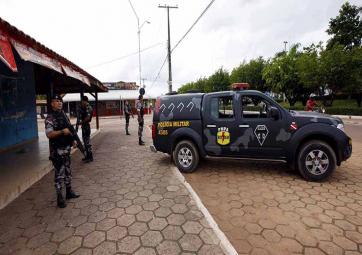 Viaturas da Polícia Militar e Ronda Ostensiva Tática Metropolitana (Rotam) estão fazendo rondas contínuas na entrada e no centro da cidade.