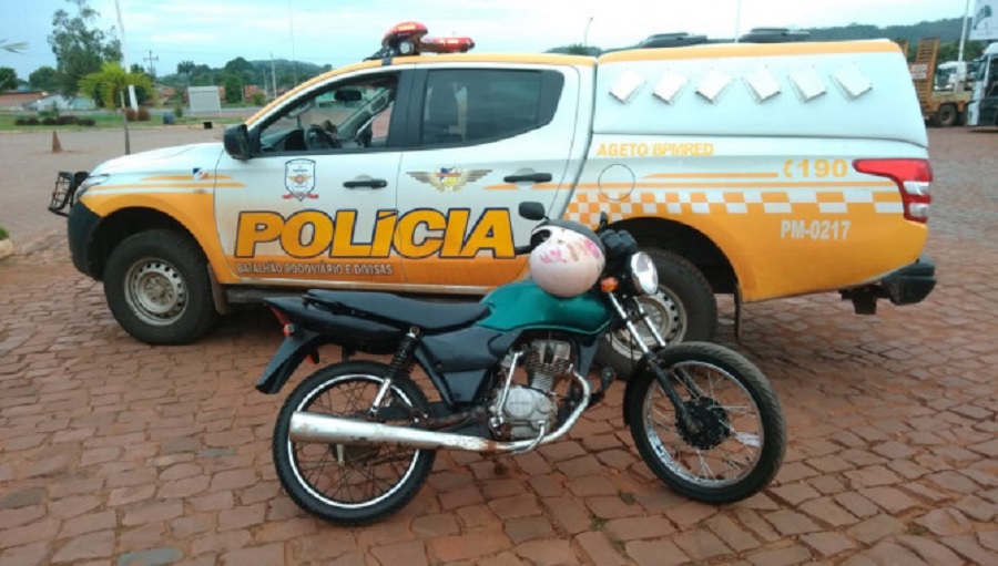 Após checarem a documentação pessoal do condutor, os patrulheiros do BPMRED passaram para a inspeção do veículo. Durante a averiguação da motocicleta que não possuía placa de identificação, os militares descobriram através do Sistema de Base de que se tratava de um veículo com restrição de furto/roubo, com registro do dia 08/01/2007 no município de Ananás -TO.