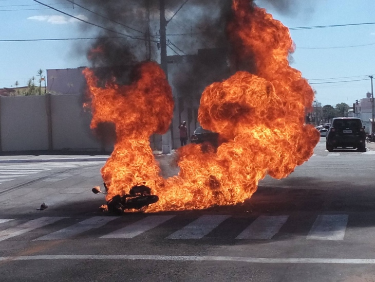 O Corpo de Bombeiros demorou cerca de 10 minutos para apagar o fogo e ninguém ficou ferido. O medo era que, com o fogo, a moto explodisse, ferindo as pessoas que passavam pelo local. No entanto, o fogo foi contralado.